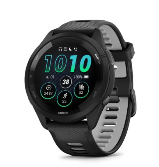 ສະມາດວອດ GPS ຂັ້ນສູງ ສໍາລັບນັກແລ່ນ Black Bezel and Case with Black/Powder Gray Silicone Band