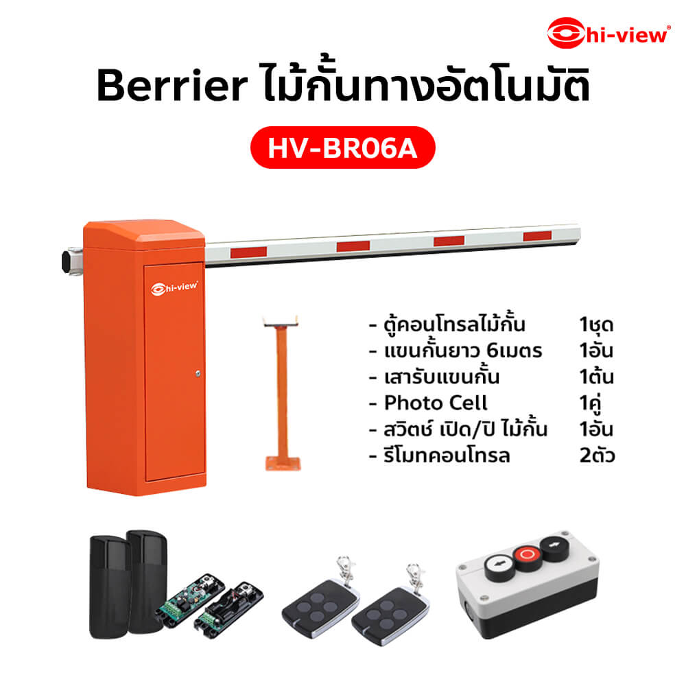 ໄມ້ກັ້ນທາງອັດຕະໂນມັດ ຮຸ່ນ HV-BR06A ປະຕູໄມ້ກັ້ນແບບແຂນຕົງ ຄວາມໄວໃນການຂຶ້ນ / ລົງ 6 ວິນາທີ ຊະນິດມໍເຕີ DC Brushless 24V / 140W ຮອງຮັບຣີໂມດຄອນໂທຣນໄດ້ສູງສຸດ 100 ຕົວ ມີລະບົບໜ່ວງເວລາປິດອັດຕະໂນມັດ ມີລະບົບຊະລໍກ່ອນເປີດສຸດ / ປິດສຸດ ມີລະບົບປ້ອງກັນການຊົນຂອງລົດ ມີລະບົບແຂນດີດກັບອັດຕະໂນມັດ ເມື່ອມີວັດຖຸຂວາງ