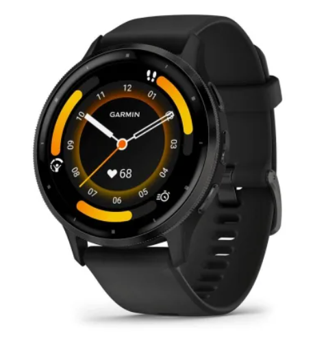 Venu 3 Slate Stainless Steel Bezel with Black Case and Silicone Band
